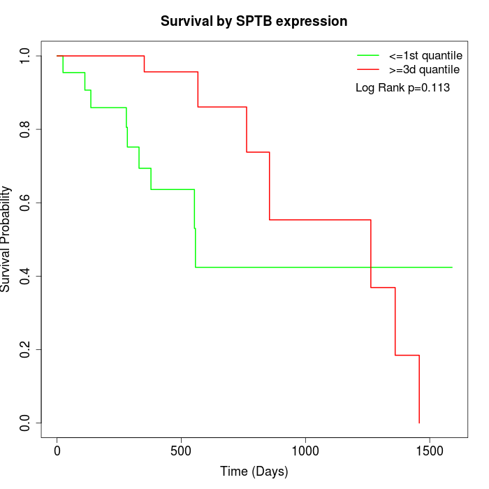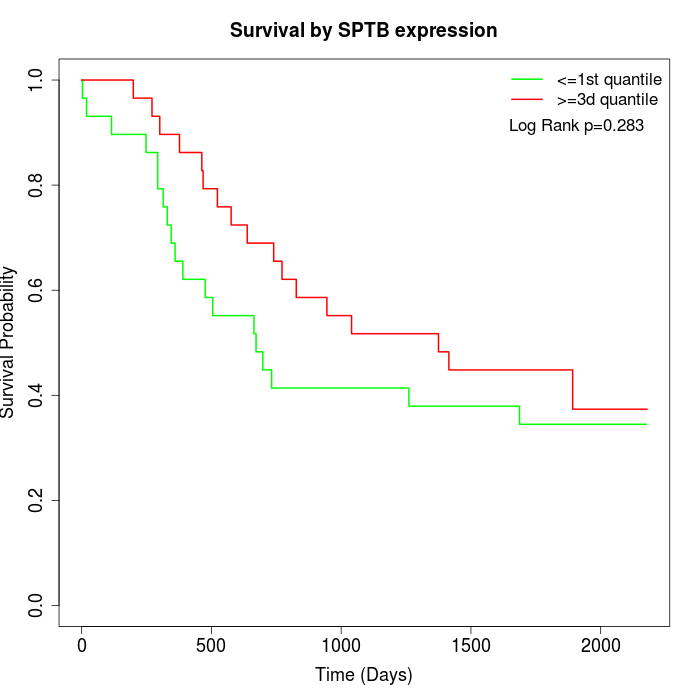 Survival by SPTB expression: