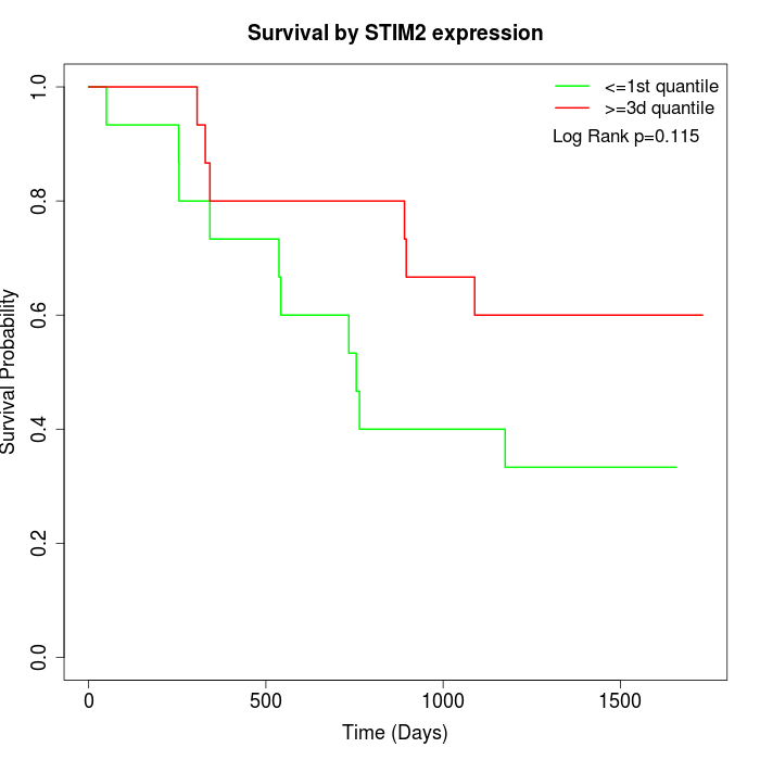Survival by STIM2 expression: