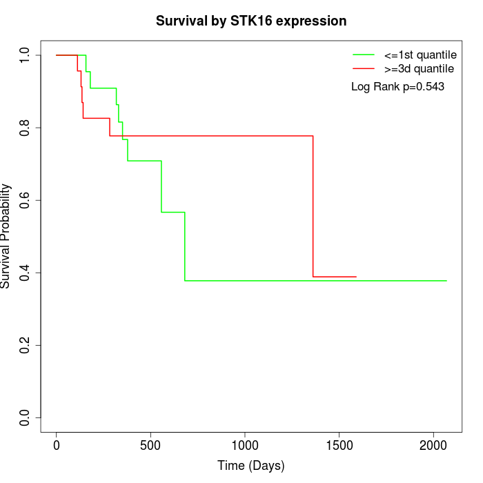 Survival by STK16 expression: