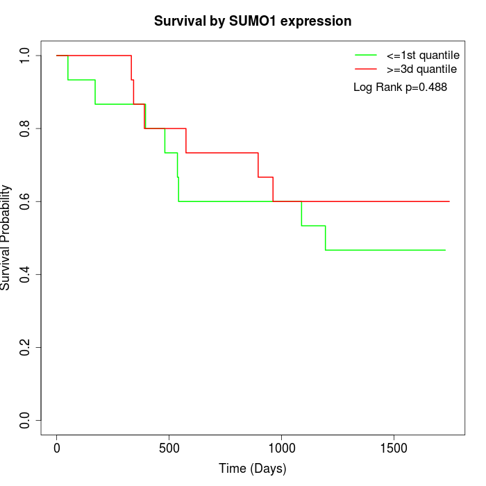 Survival by SUMO1 expression: