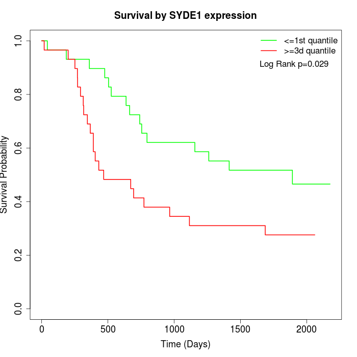 Survival by SYDE1 expression: