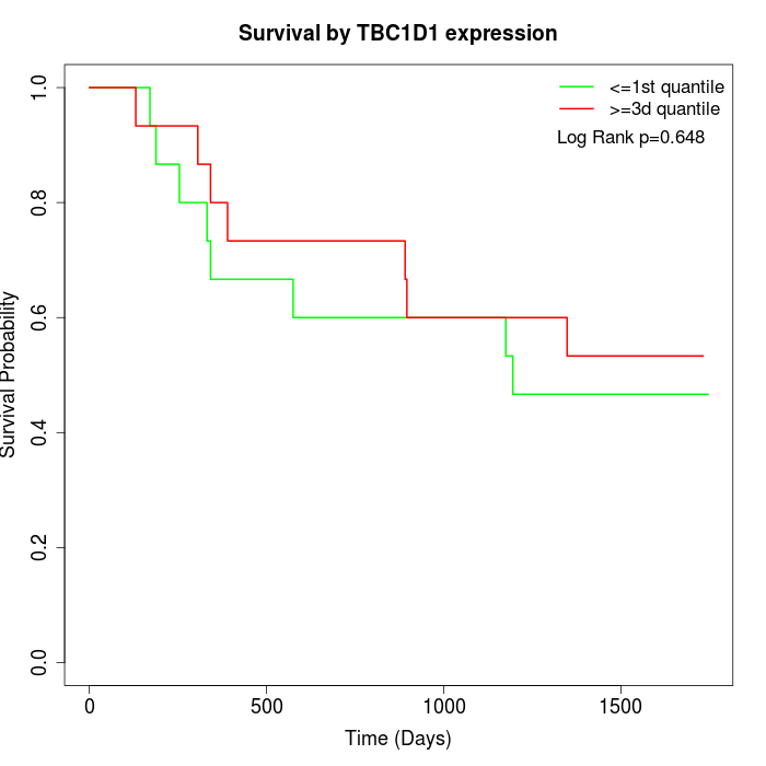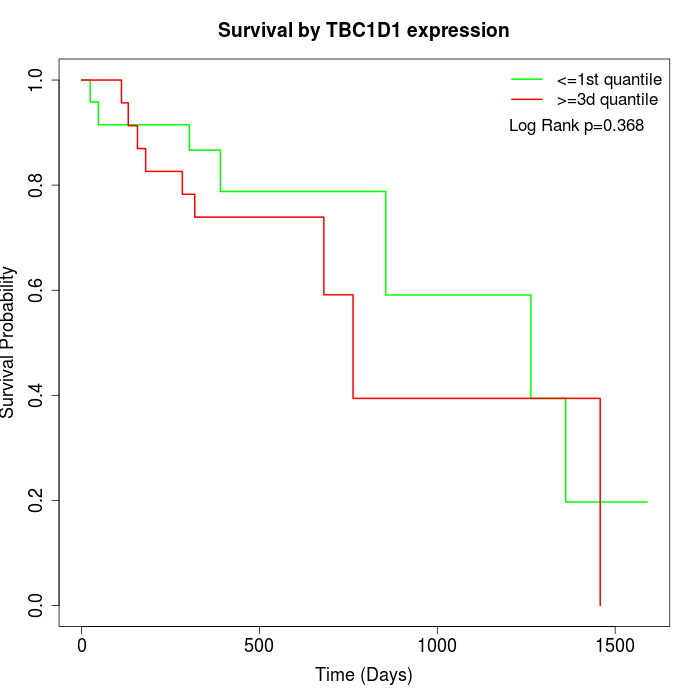 Survival by TBC1D1 expression:
