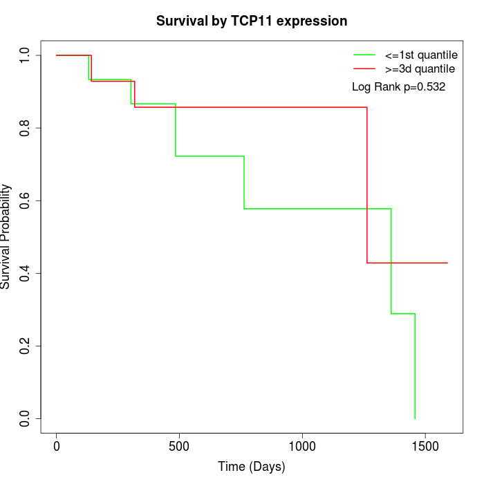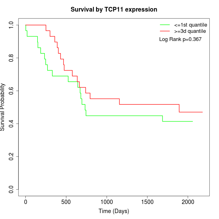 Survival by TCP11 expression: