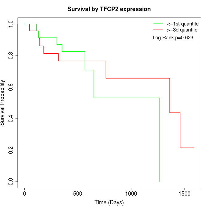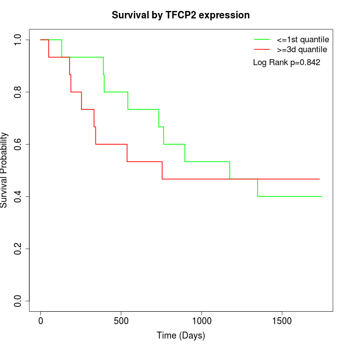 Survival by TFCP2 expression: