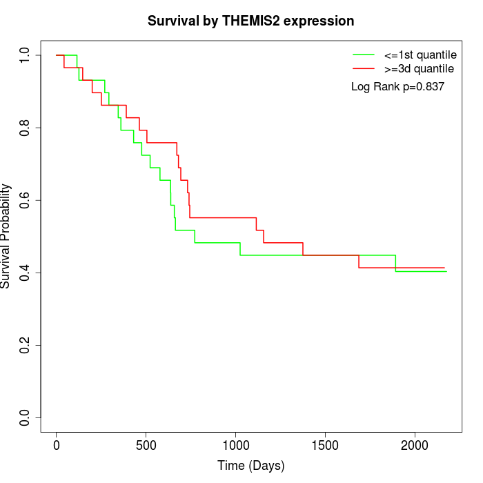 Survival by THEMIS2 expression: