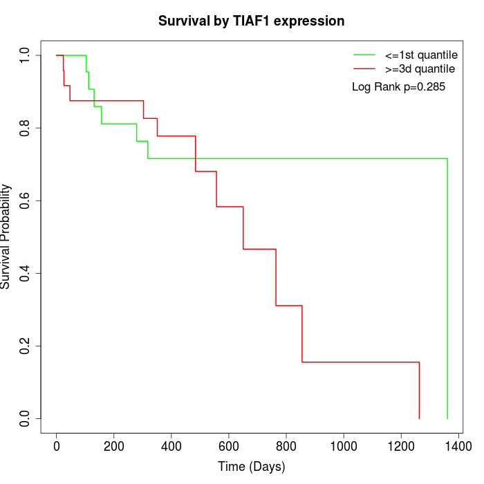 Survival by TIAF1 expression: