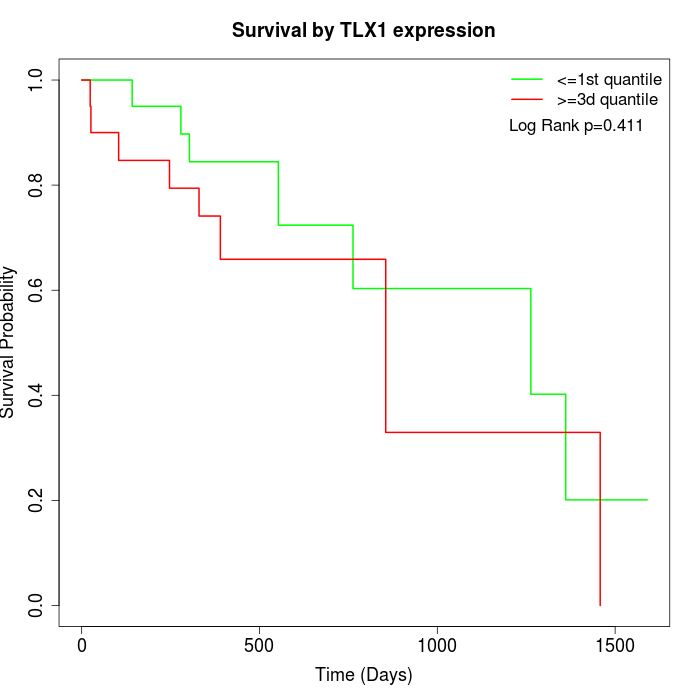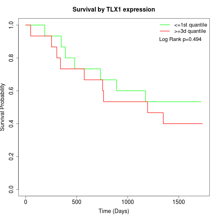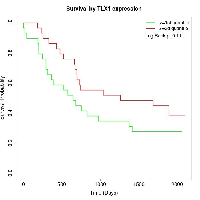 Survival by TLX1 expression: