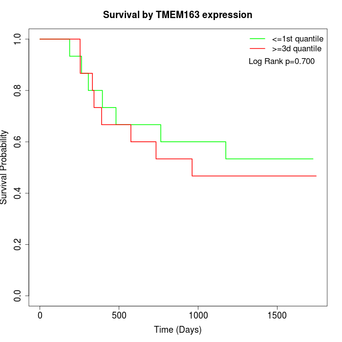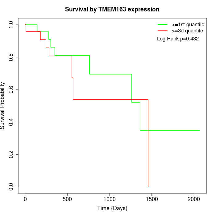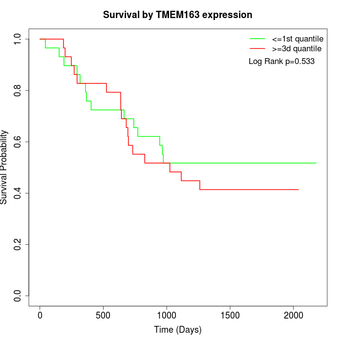 Survival by TMEM163 expression: