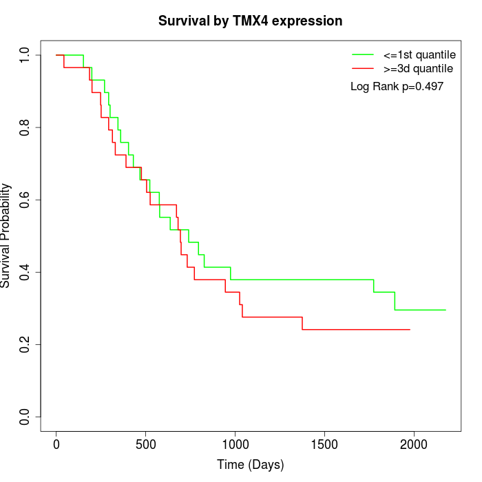 Survival by TMX4 expression: