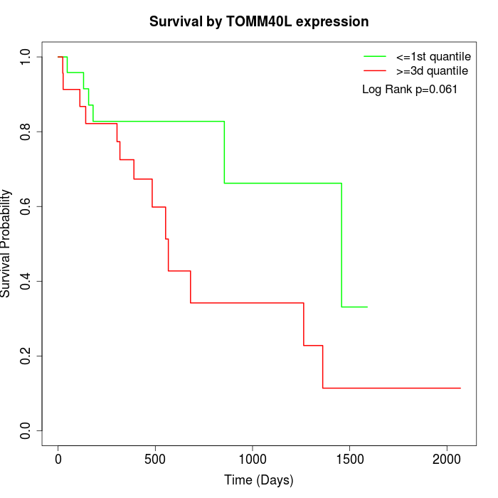 Survival by TOMM40L expression: