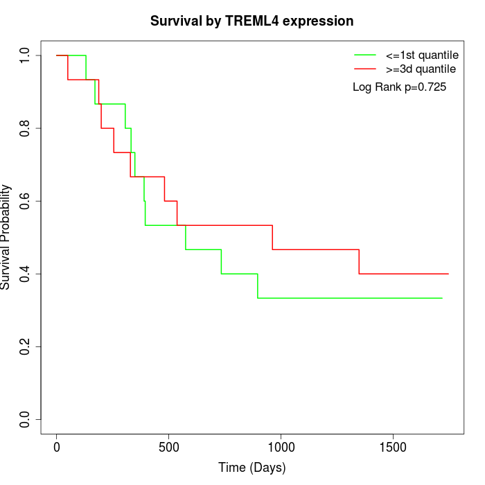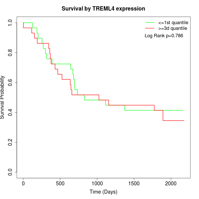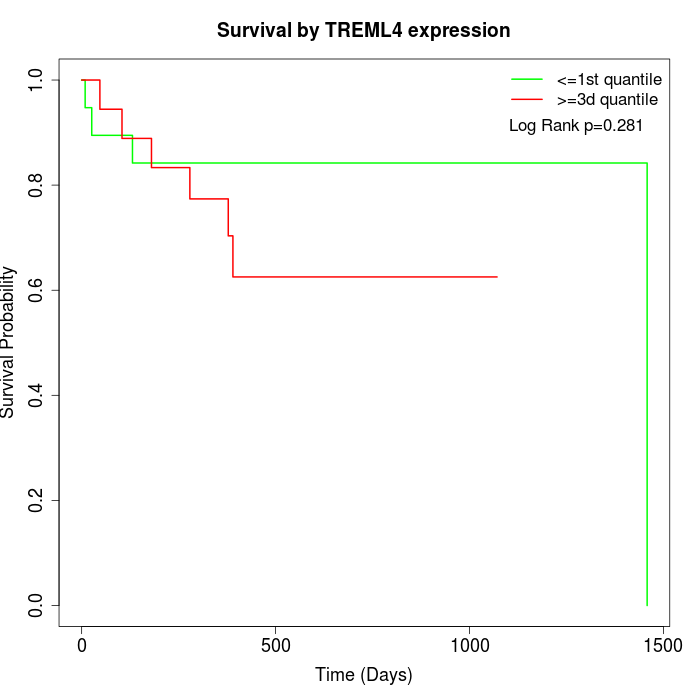 Survival by TREML4 expression: