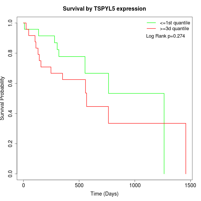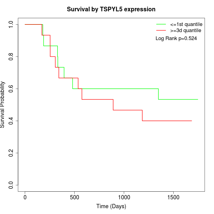 Survival by TSPYL5 expression: