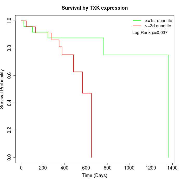 Survival by TXK expression: