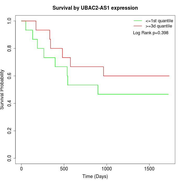 Survival by UBAC2-AS1 expression: