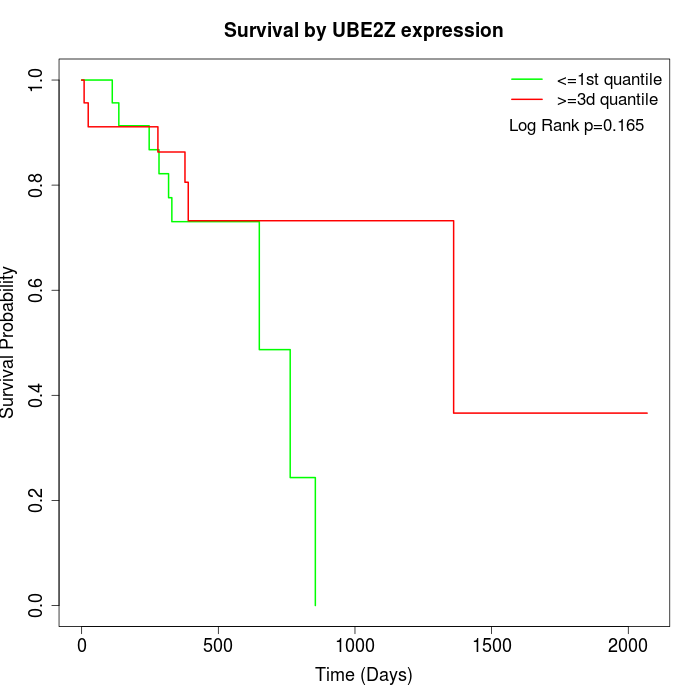 Survival by UBE2Z expression: