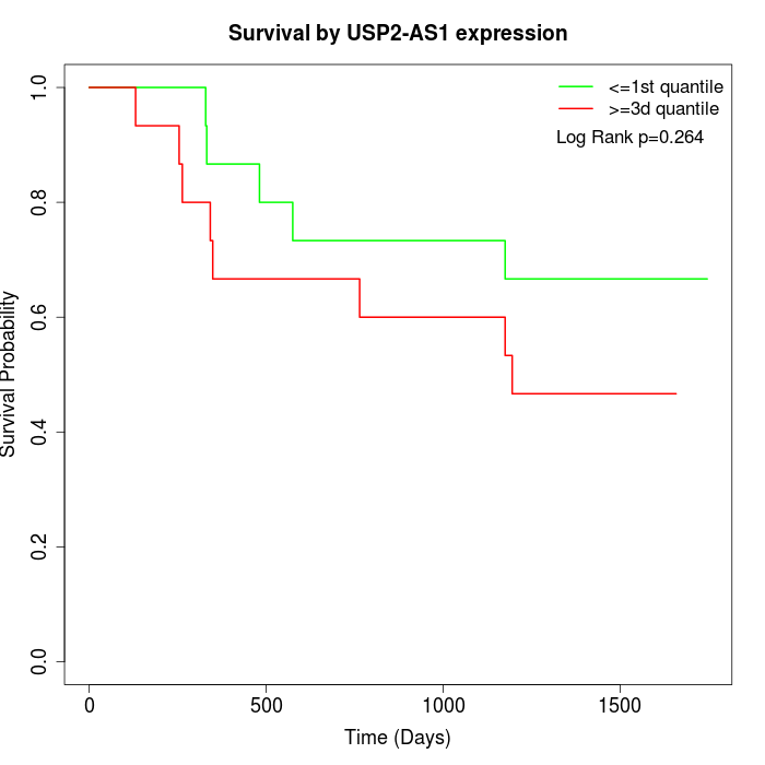 Survival by USP2-AS1 expression: