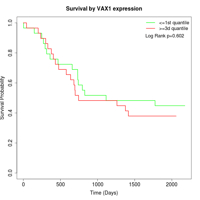 Survival by VAX1 expression: