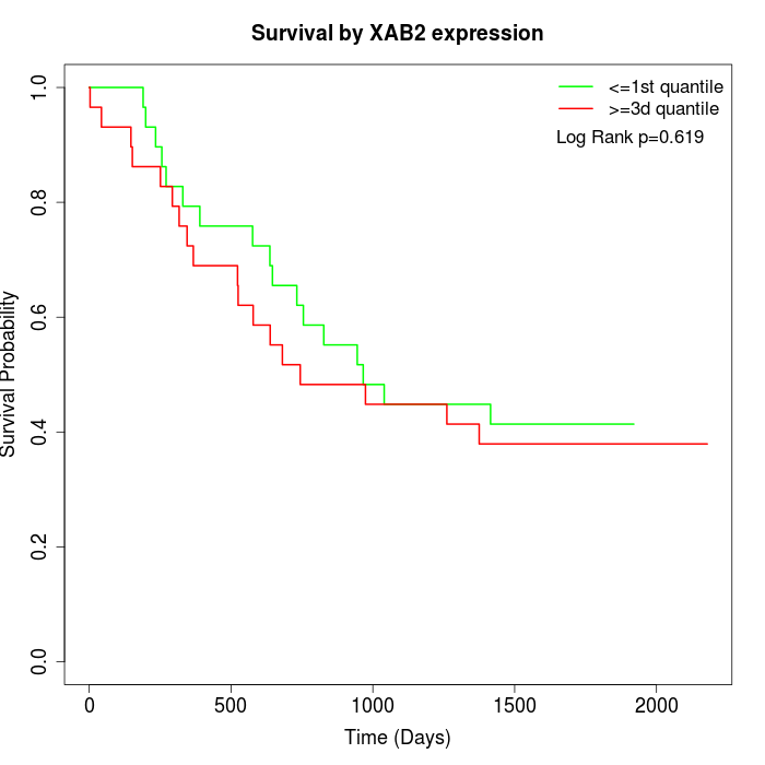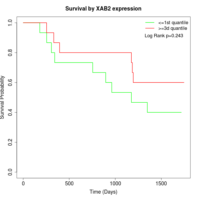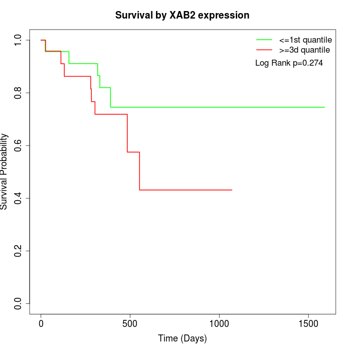 Survival by XAB2 expression: