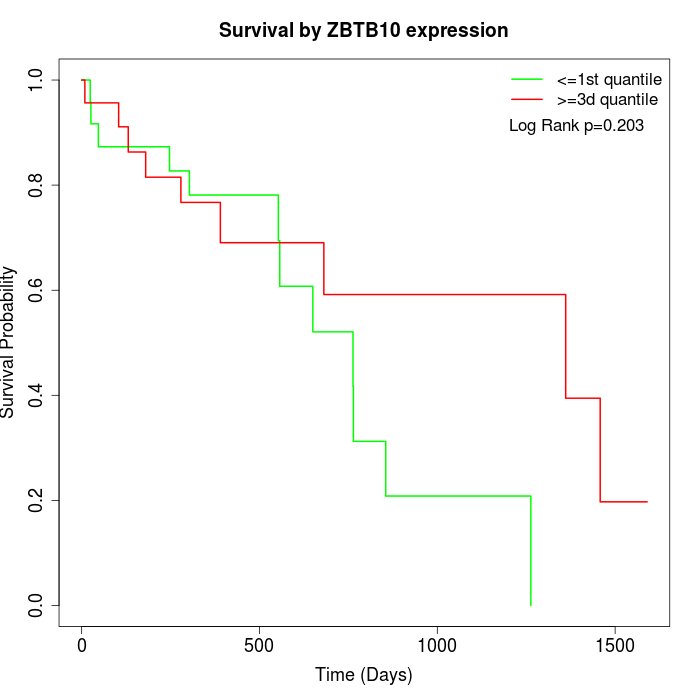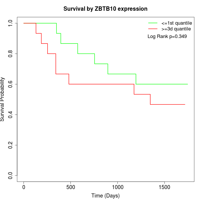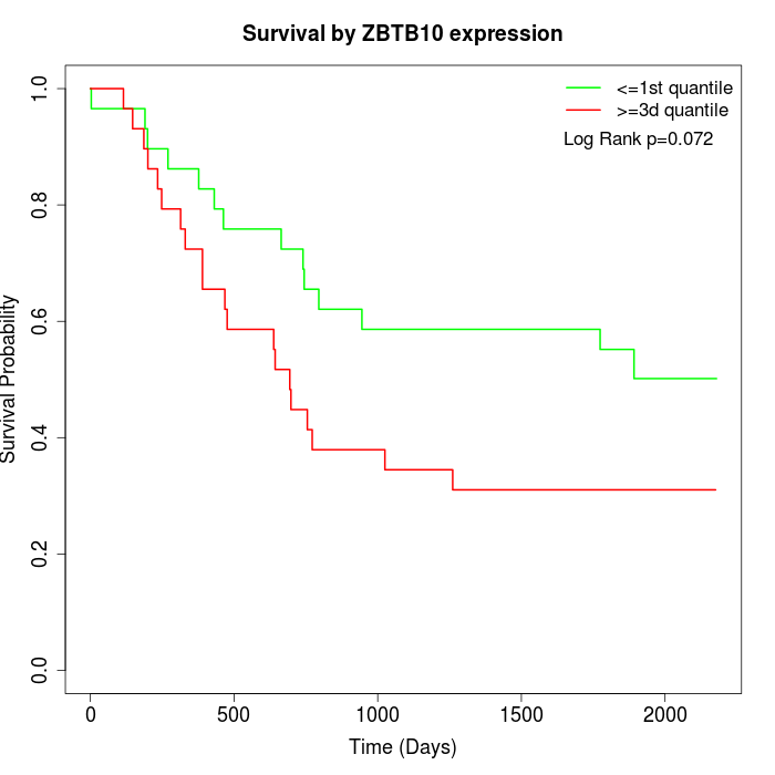 Survival by ZBTB10 expression: