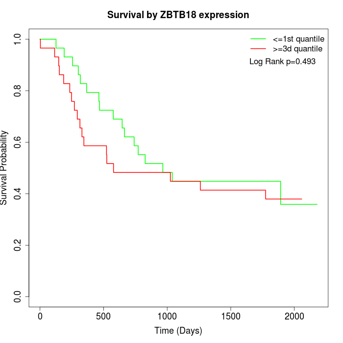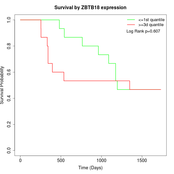 Survival by ZBTB18 expression:
