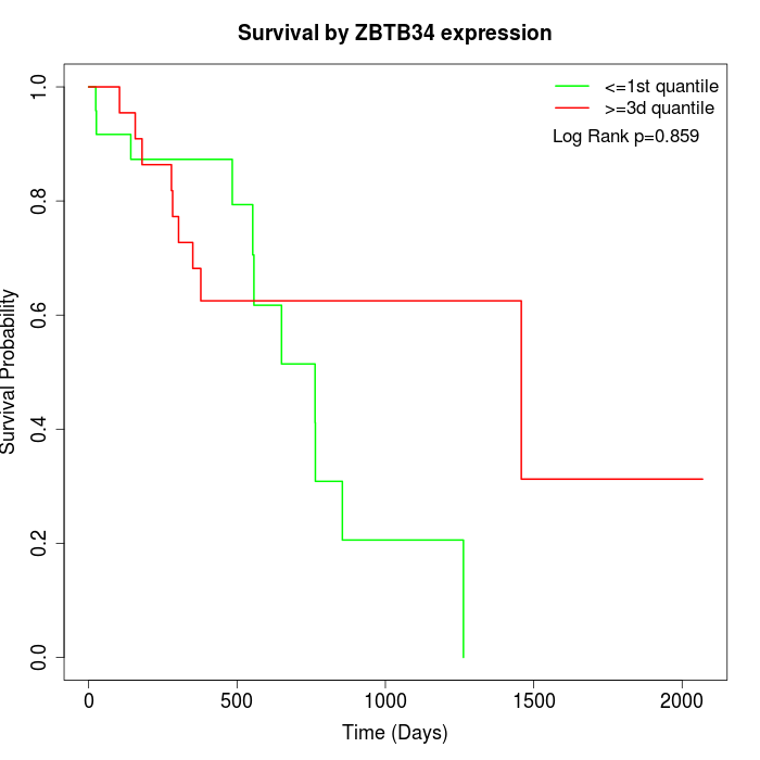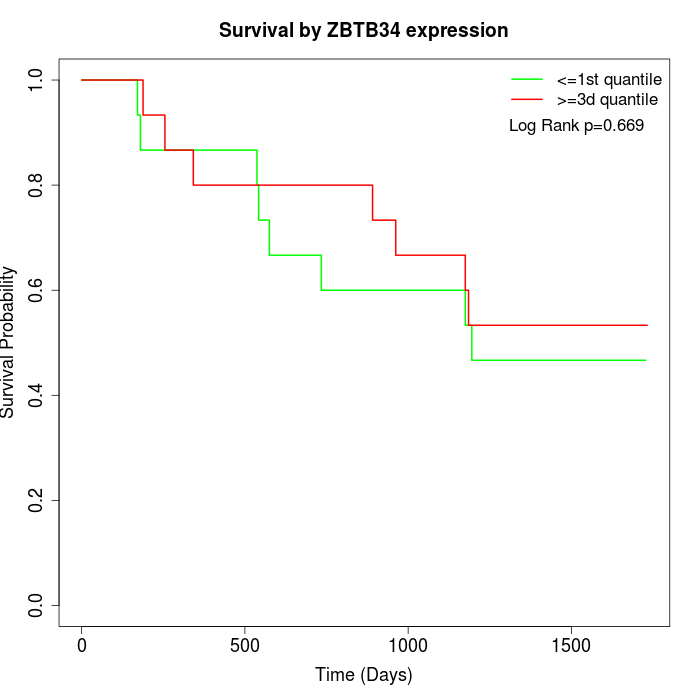 Survival by ZBTB34 expression: