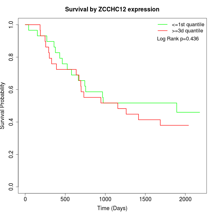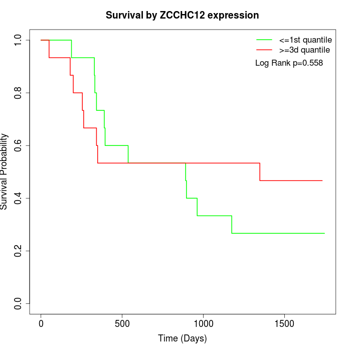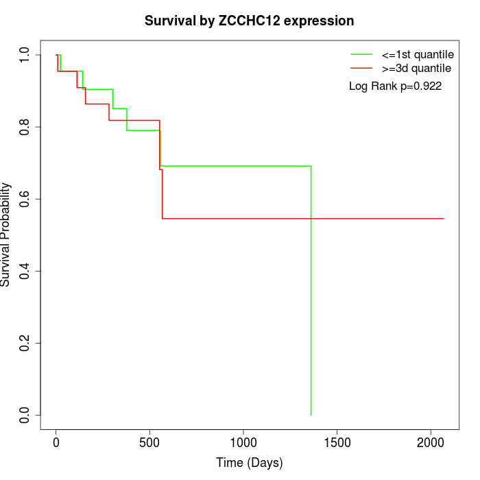 Survival by ZCCHC12 expression:
