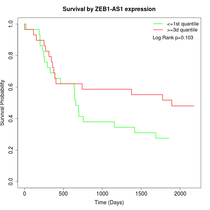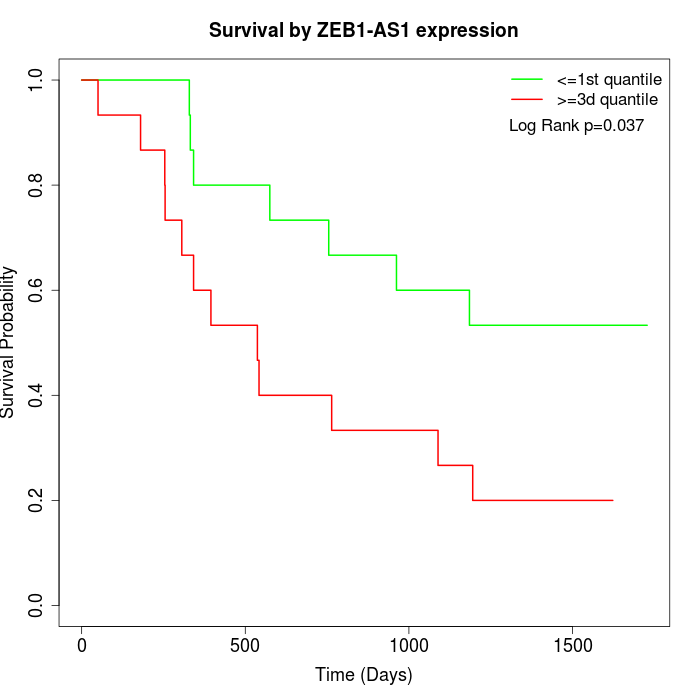 Survival by ZEB1-AS1 expression: