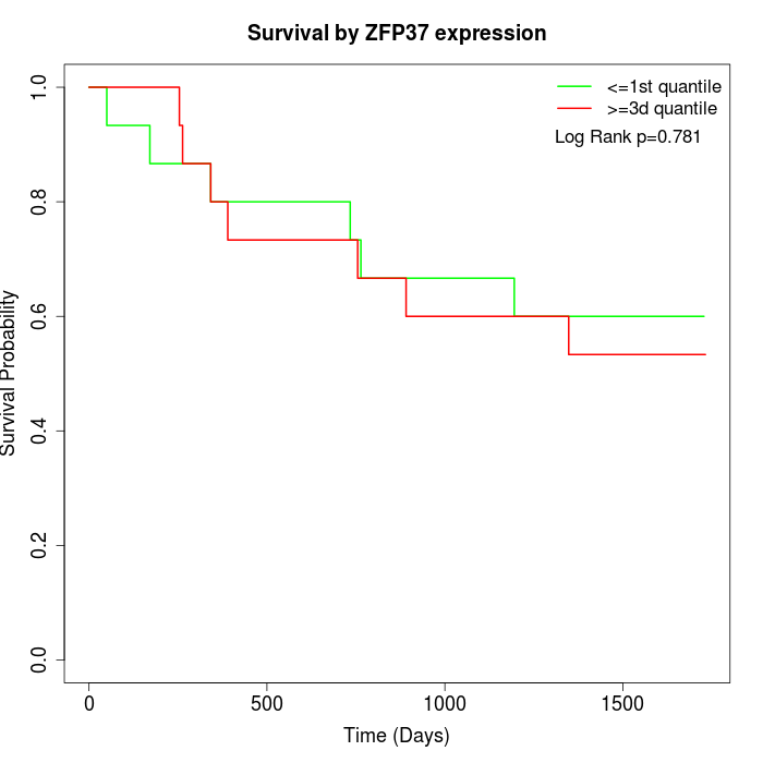 Survival by ZFP37 expression: