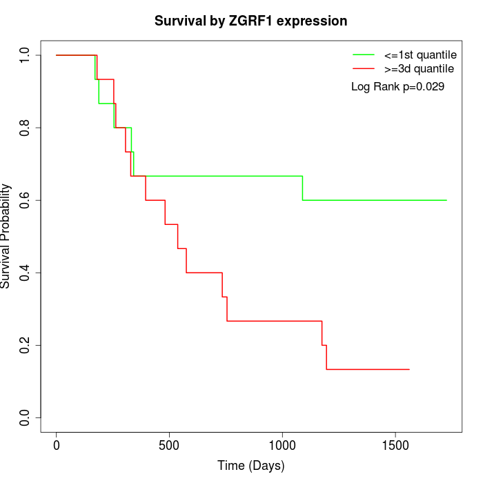 Survival by ZGRF1 expression: