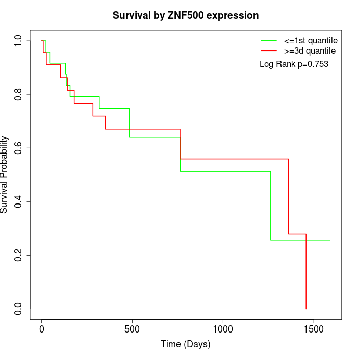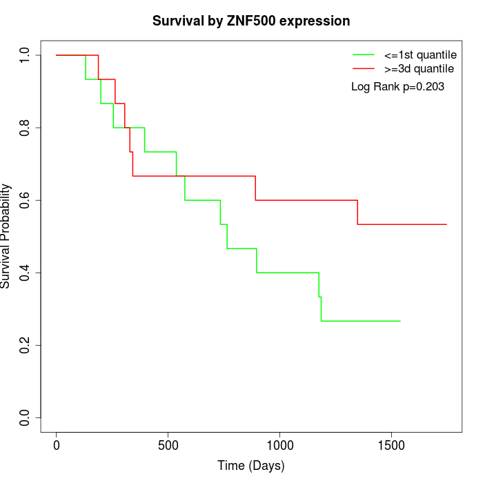 Survival by ZNF500 expression: