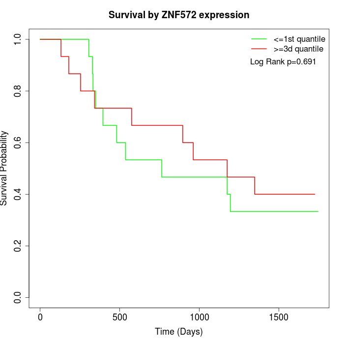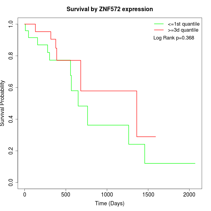 Survival by ZNF572 expression:
