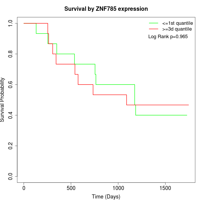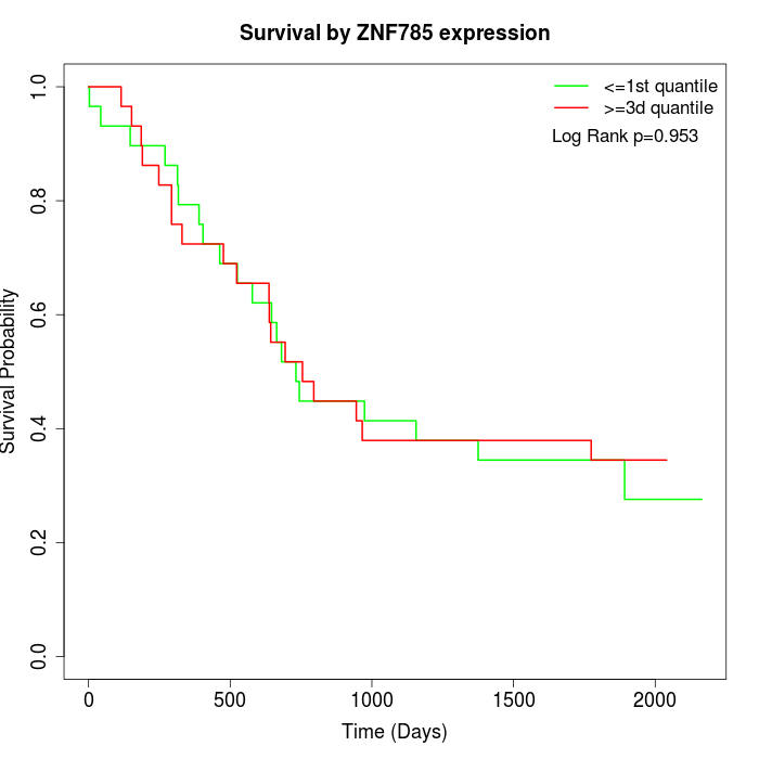 Survival by ZNF785 expression: