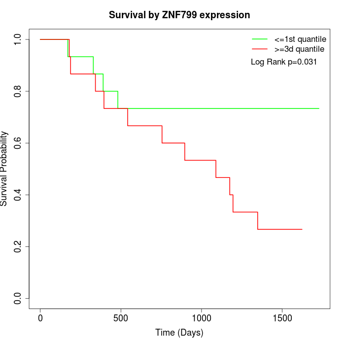 Survival by ZNF799 expression: