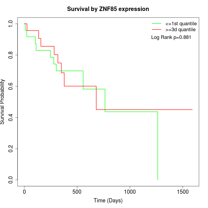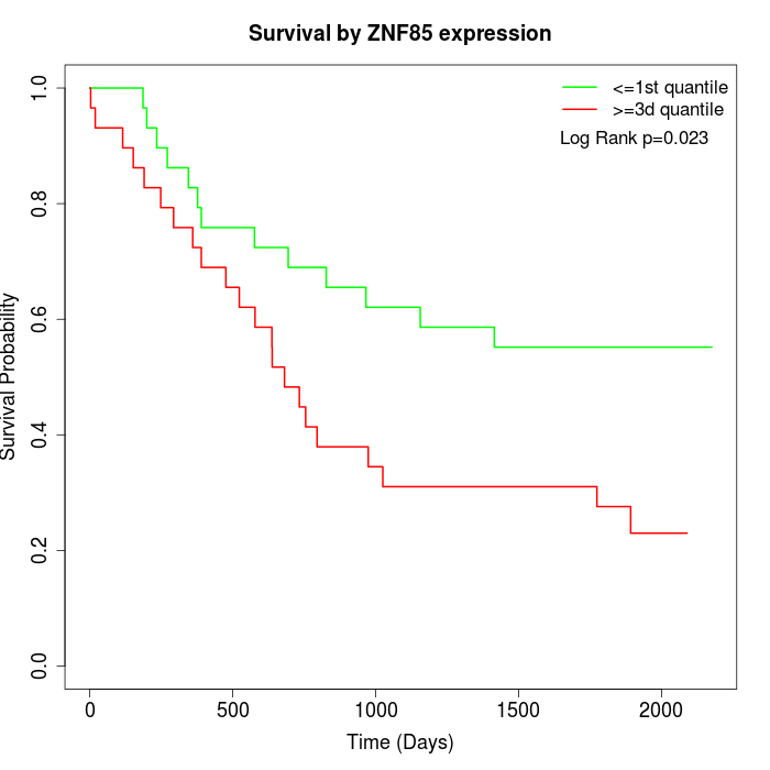Survival by ZNF85 expression: